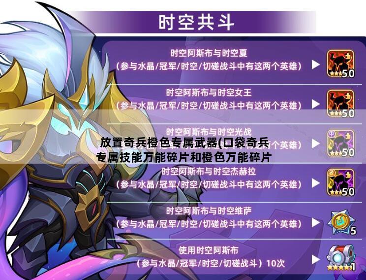 一、口袋奇兵专属技能万能碎片和橙色万能碎片哪个更划算